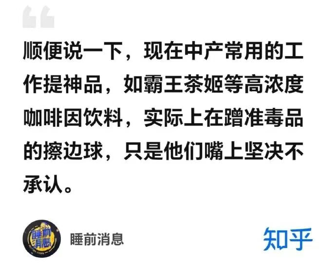 文 | 超聚焦在资源市场,没有什么比一夜之间被贴上“准毒品”的标签更惊悚的故事了。12月26日,知名博主“睡前消息”在知乎上发文,矛头直指霸王茶姬,称其高浓度咖啡因产物是在“蹭准毒品的擦边球”。这篇檄文如同