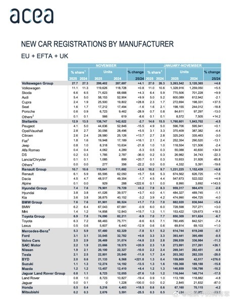 如果我们团结欧洲具体国家 的中国品牌来看,也能发现一些细节: 1、德国市场,11月比亚迪销量大幅增长了834%,在年度累计销量上超过了特斯拉,而MG(包含荣威车型换标)在11月销量也增长了近170%,两家车型在本地的出口量分别 为4500辆、2000辆摆布 。 2、法国市场,中国品牌销量大概一个月是4500辆摆布 、2025年整年估量 销量突破5万辆大关。其中 MG、比亚迪销量分别 是3000辆、1140辆摆布 ,而MG已经是法国市场销量最大的中国品牌、位居第13名摆布 。但是最让人不测的是,零跑因为 本地化率不够 所以无法获得法国的当局补助 ,一度制止了在该地的生产。 3、英国市场,比亚迪10月销量直接从之前的千辆水平飙升至6549辆;第二名是江淮X8 PLUS,销量达到 3381辆;第三名和第四名分别 是MG、奇瑞,都是3000辆规模。值得一提的是,奇瑞旗下的Jaecoo品牌在英国体现精彩,份额达到 了2.2%,Jaecoo 7已经连续四个月进入销量前十名;而Omoda 5则是在苏格兰地区销量首次进入前十名。 4、意大利市场,11月MG、比亚迪的销量都非常精彩,中国品牌第一名是MG,第二名的比亚迪则是大幅增长了534%、也达到 1420辆的销量。其中 比亚迪海豚SF以1.8%的市场份额来到了意大利车型销量榜单的第11名,而作为斯特兰蒂斯的大本营之一,零跑T03则位列第15名。零跑T03在意大利因为 可以享受到最高1.1万欧元的报废补助 ,所以补助 后价值 降至4900欧元,而且零跑海外供应 3000欧元的返利,所以零跑T03本地的告白 宣传 语写的是“比你的自行车还自制”——之所以有如此大补助 ,推想 和之前零跑暂停了波兰的组装工场 有关系。 5、西班牙市场,比亚迪11月同比上涨 267.7%,销量和市场份额均创下汗青记录,销量在西班牙位列第 14 名。而奇瑞旗下的Jaecoo单月销量上涨170%、Omoda上涨64.8%,体现强劲。甚至奇瑞在西班牙本土化生产的新品牌Ebro都位列第 21 名,比特斯拉还卖得好。 6、欧洲其余一些市场中国品牌的市占率就更高,比如在波兰中国品牌销量增长了213%、市场份额高到10.4%。匈牙利市场,Jaecoo 7排名第14名,比亚迪和MG也进入品牌前二十名。在瑞典、挪威等北欧国家 因为 沃尔沃在本地化生产,所以沃尔沃销量自不必说,而吉祥旗下的领克在瑞典销量增长了140%,极氪甚至在挪威创下了1950%的同比增长,还有小鹏、MG、极星在北欧市场都算是不错的。 中国品牌之所以在欧洲市场受追捧,一个症结 因素 还是价值 原因。有报道体现,中国汽车在欧洲市场贩卖有差不多30%的价值 优势 ,而乘联会的数据则体现,今年出口到英国和比利时的中国车均价差不多分别 是2.2万美元、2.3万美元。 因为 欧盟对中国纯电车有最高35%的处分 性关税,中国车企的应对计谋也很有意思,首先是加大了对未加关税的PHEV车型出口力度——PHEV车型只必要缴纳10%的进口税,而中国的生产资源可以或许比欧洲低20%到30%,所以才有英国和比利时的插混车型销量增长超过400%。 其次是通过本地化组装来避税,不外因为 本土化率请求 超过40%,所以中国车企不得不开始考虑在欧洲建厂。 奇瑞是中国品牌中首个在欧洲有现实产量的品牌,与本地相助同伴在巴塞罗那的一家前日产工场 通过CKD方法 组装汽车。同时比亚迪将会在匈牙利设立生产线,计划峰值产能将达到 30万辆,而且新工场 2026年就将开始投产,之后还计划在土耳其建立新工场 。 同样,小鹏汽车如许的新势力也准备和麦格纳斯太尔相助,在欧洲组装首批车辆、绕开关税。 对俄罗斯出口进入拐点,最大玩家奇瑞“换标” 让我们再把眼光转向俄罗斯市场。根据统计数据,1-11月份中国向俄罗斯的出口已经达到 了51.3万辆,这个数字还是在同比下滑了52%的条件下。这内里比较告急的指标是乘用车,中国出口到俄罗斯的乘用车2025年累计为49.1万辆,同比下滑了48%,这也使得俄罗斯从去年 中国汽车第一大出口市场退到了第二名的地位 ,第一名变成了墨西哥。 受到俄罗斯出口下降 的影响,整个中亚和俄罗斯地区的出口总量仅为109万辆、同比下滑了24%。整个地区已经从2024年中国汽车出口第一大地区市场滑落到第四名。 在俄罗斯市场,燃油车还是本地市场消费的主力产品,前11个月中国出口到俄罗斯的汽油车数量为44万辆,占到了出口总量的近90%,这也使得几家在中国市场错过了新能源先发优势 的中国品牌获取了比较大的份额。 比如哈弗同比销量有明显 增长,市场份额从岁首年月 的12.9%上涨到14%。同时俄罗斯本土组装企业Tenet直接进入了月度前三,月销量靠近10000辆,仅次于拉达、哈弗。 现实上,Tenet这家车企是中俄合资企业,从8月份开始在大众团体此前位于卡卢加的工场 生产换标奇瑞车型,主如果 把瑞虎7L换标为Tenet 7、瑞虎5x换标为Tenet 4,这也使得奇瑞品牌在俄罗斯的销量大幅下跌、11月跌幅达到 71.4%。不外在俄罗斯市场,奇瑞还有捷途在贩卖,甚至可以排到中国品牌的第四名。 俄罗斯市场第三名则是吉祥在白俄罗斯的合资品牌Belgee,其在俄罗斯有多款车型,包括X70、X50、Monjaro(星越L)都是增长态势。 总体来看,奇瑞依然是俄罗斯市场的头部玩家,2025年前10个月累计销量超过了18万辆,而长城汽车算上哈弗和坦克则为9万辆,再往后的长安、吉祥汽车基本 就是1.6万辆摆布 。比较不测的是江淮汽车在俄罗斯还有1.3万辆的累计销量,主销车型就是江淮X8 Plus。 从可以查询到数据来看,2025年在俄罗斯市场销量最大的中国车型是哈弗