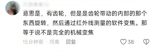 红外线丈量实现的软件变焦,说明不是纯机械变焦。”由于