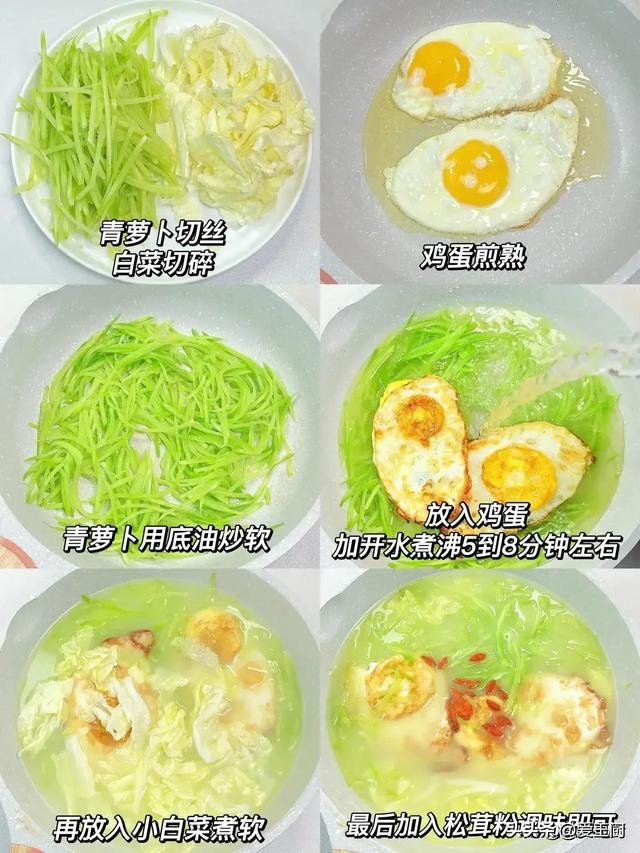 1、青萝卜素丸子!2、荷包蛋青萝卜汤!3、青萝卜窝窝头!4、盐青萝卜!