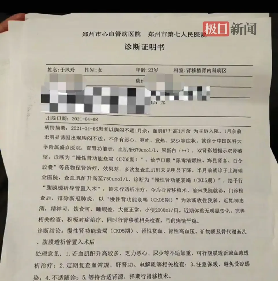 极目新闻记者 王鹏 克日,一位名叫于悦的短视频博主发视频称,她在23岁的年纪被查出尿毒症晚期,她的人生方才 开端 却已经进入了倒计时。为了凑齐治病的钱,于悦在治病之余跑起了外卖,在爬楼时她常因身材缘故起因累得腰都直不起来。于悦体现之所以选择跑外卖,一方面是因为 这份工作更自由,另一方面也是因为 她天天必要透析治疗,很多公司在了解她的环境后都谢绝 她的入职申请。于悦说,她每跑一天外卖就能多换一天的生命,这四年多时光 她不停在和逝世 神赛跑。 ![]() ![]() 8月24日,27岁的于悦告知 极目新闻记者,她是山东济宁人,目前在沈阳市边跑外卖边治病,她是在2021年被查出尿毒症晚期,必要靠透析才能活下去,如果长时光 不透析就会器官衰竭,还会有各类 并发症,随时都邑 有生命伤害。“我在这四年多时光 ,感染了三次腹膜炎,年夜 夫体现我的病不成 能完全治愈,目前天天都要进行透析治疗,在身材感到 不是很难过时我就会选择去跑外卖,已经跑了三个多月时光 ,每个月除去可以报销的部门,在治病上我要花费三千多元。” ![]() 在于悦的一份诊断证实书中,记者看到她2021年4月在郑州的一家病院 被诊断出慢性肾功效 衰竭、肾性贫血 等疾病,其时她正值23岁的年纪。于悦告知 记者,她目前还没有完婚,完婚对于她来说已经变得不太可能了,她来自重组家庭,尚有两个妹妹,父亲是在做保安工作,母亲在她刚出生3个月时就因病去世了,“父亲每个月赚的钱不多,对我的病情也是心有余而力不敷,目前,我紧张靠送外卖和做一些直播来凑医药费,在送外卖时,我经常必要爬楼梯,因为 我的病情会感到特殊劳顿 ,经常年夜 口喘息。在直播上,我也赚得不多,有一次直播四个小时,只赚了20元。目前,在没有其他符合工作环境下,我只能选择去跑外卖。” 对于将来生活的期待,于悦体现固然本身经历了很多不幸的事情,但照旧会保持乐观心态积极地活下去,很多网友在得知于悦的环境后纷纭 给她加油打气,鼓励 她刚强地活下去。于悦称,她之前在济宁有上医保,每个月可以为 她报销百分之七十的医药和治疗费用,目前经济压力不是特殊年夜 。 ![]() ![]() (泉源:极目新闻) |